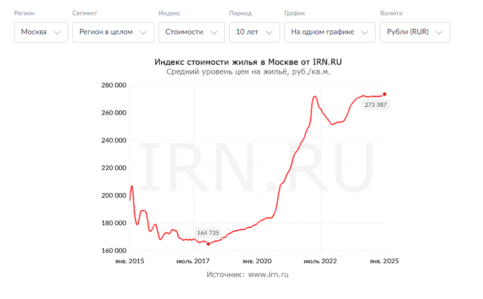 • 2025 (февраль): Москва — 330 тыс. руб./м² (+10% за 2 года), СПб — 200 тыс. руб./м² (+11%).